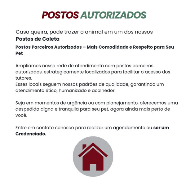 SIM, Temos uma rede de locais preparados para receber você e o corpo do seu pet com toda a segurança e carinho.